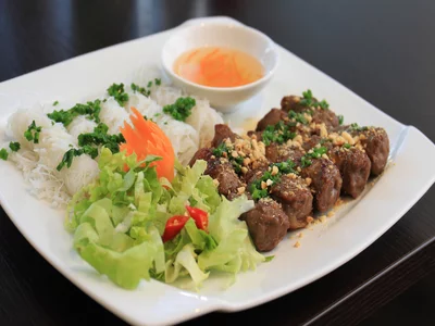 Die kulinarische Vielfalt der vietnamesischen Streetfood-Küche, die von Reis- und Kaffee- Export geprägte Kulturlandschaft und das Farbenspiel eines exotischen Obst- und Gemüsemarkts spiegelt sich in diesem Lokal originalgetreu wieder. Wer's eilig hat oder lieber zuhause isst, bestellt einfach telefonisch Lieblingsgerichte wie Pho-Suppe, Bo Nuong Banh Hoi oder Garnelen mit Tamarinde.