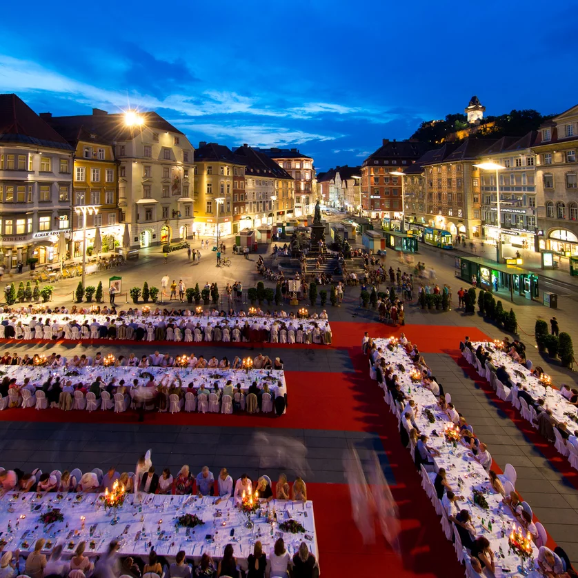 Seit 2010 war die Lange Tafel der GenussHauptstadt Graz ein Höhepunkt im kulinarischen Kalender von Graz – ein festlicher Abend unter freiem Himmel, an dem bis zu 750 Gäste gemeinsam an der Langen Tafel Platz nahmen.