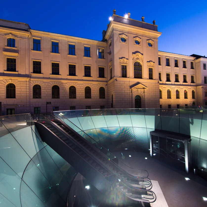 Modernes Gebäude mit Glas-Design und Aufgängen in Graz. | © Graz Tourismus - Harry Schiffer