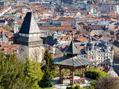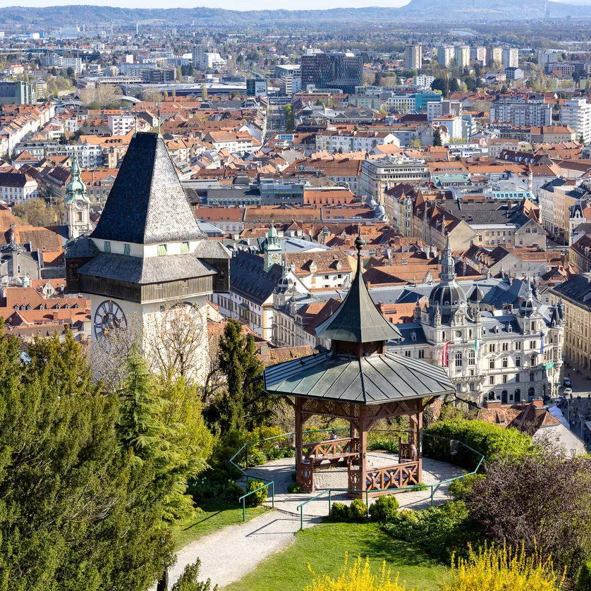 Der Chinesische Pavillon auf dem Grazer Schlossberg bietet einen malerischen Panoramablick über die Dächer der Stadt. Eingebettet in die historische Kulisse des Schlossbergs, ist er ein perfekter Ort, um die Aussicht zu genießen und die besondere Atmosphäre hoch über Graz auf sich wirken zu lassen.