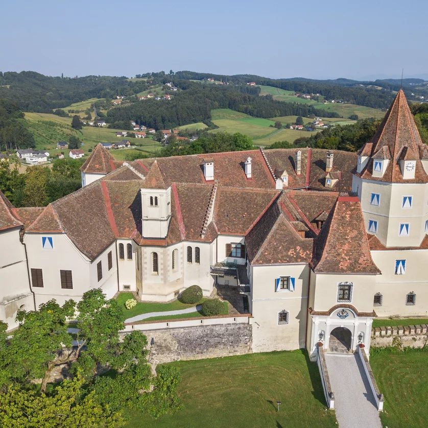 Das Schloss Kornberg ist in ca. 50 Autominuten von Graz erreichbar.