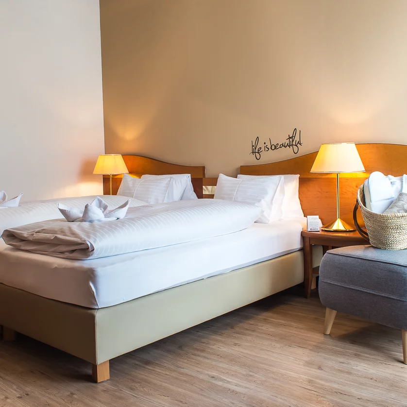 In Mariatrost gelegen, dem grünsten Stadtteil von Graz, ist unser familiär geführtes Hotel nur 1 Gehminute von der Straßenbahnlinie Nr.1 entfernt, die direkt ins Stadtzentrum fährt. Die kunstvoll gestaltete Saunalandschaft (Finnische Sauna, Dampfbad, Tepidarium mit Lichttherapie, Wärmebänke, Infrarotkabine, Solarium und Ruheoase) lädt zum Entspannen und neuem Kräftesammeln ein. Das Hotel befindet sich in der Nähe des LKH Klinikums, der Universität Graz und des Naherholungsgebietes Leechwald.