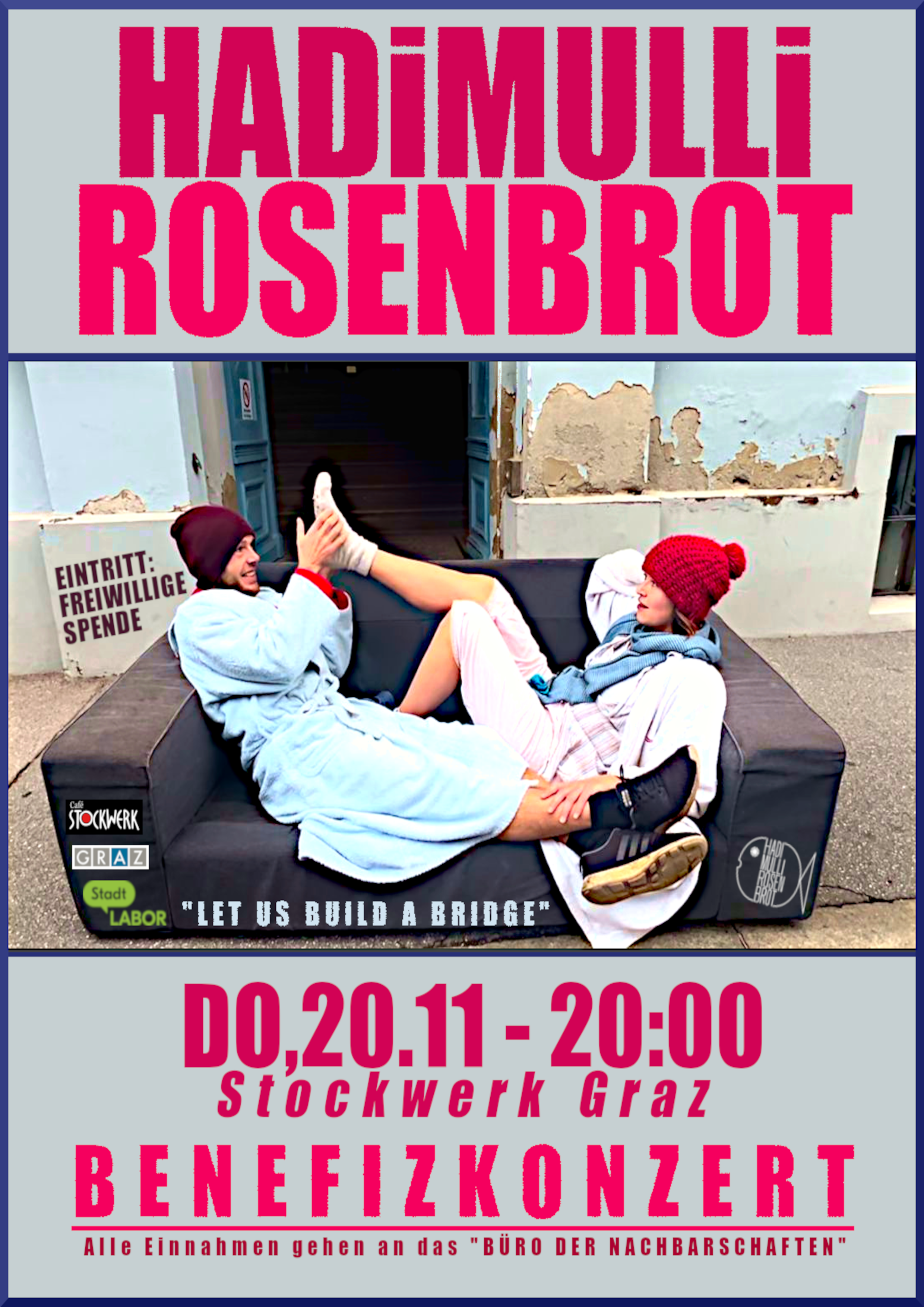 Eintritt: FREIWILLIGE SPENDE - der Reinerlös geht direkt an das "BÜRO DER NACHBARSCHAFTEN"