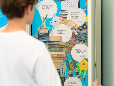 Bei dem Besuch der Ausstellung geht es um Themen, die uns jeden Tag betreffen. Zum Beispiel: Wofür muss man jedes Monat Geld ausgeben?