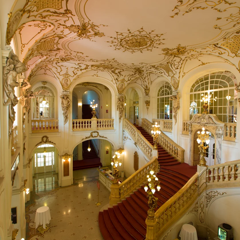 Im Café Stolz im eindrucksvollen, neobarocken Ambiente des Spiegelfoyers der Oper Graz finden regelmäßig Kammerkonzerte statt.