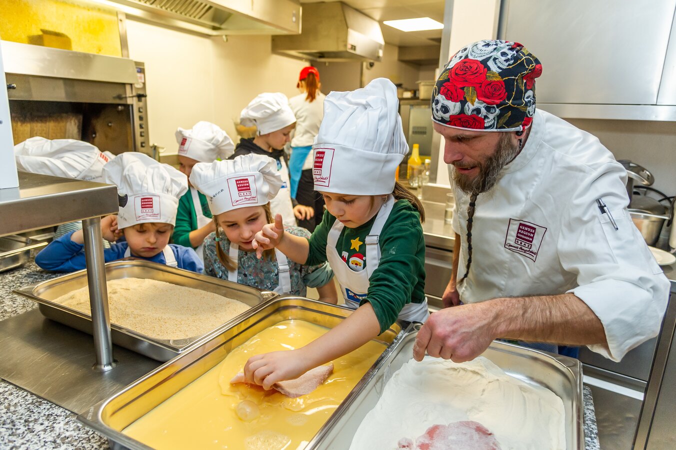 Mit Freude und Spaß gesund Kochen ist das Motto. Und das mit frischen, heimischen Produkten! Gemeinsam mit den Küchenchefs der GenussHaupstadt kochen Kinder in verschiedenen Küchen der Partnerbetriebe ein 3-Gänge-Menü mit allen Sinnen. Natürlich werden die zubereiteten Köstlichkeiten im Anschluss gemeinsam mit den Großen verputzt. Hier tischen kleine Feinschmecker ganz groß auf!