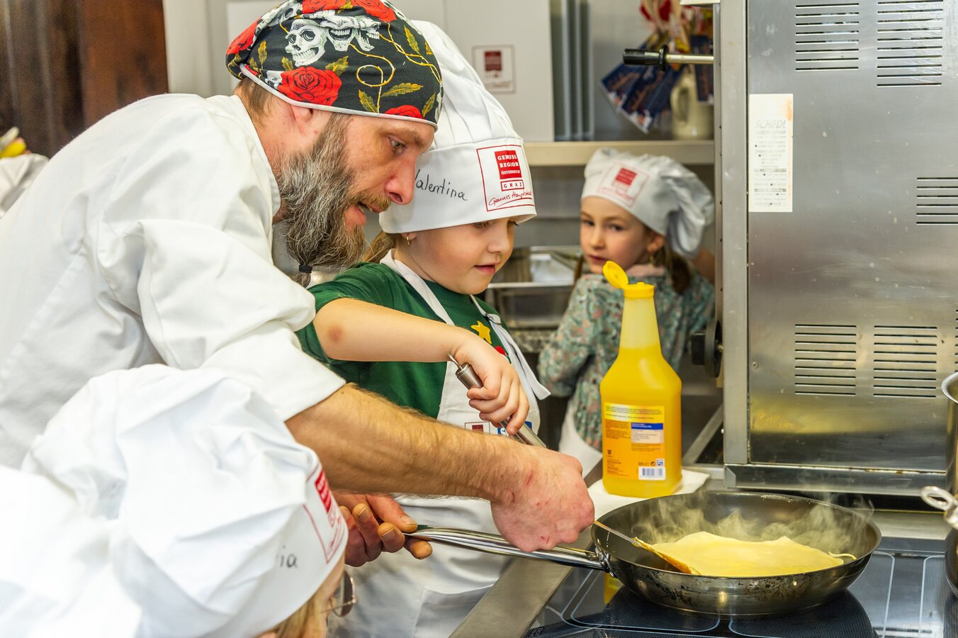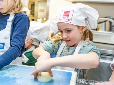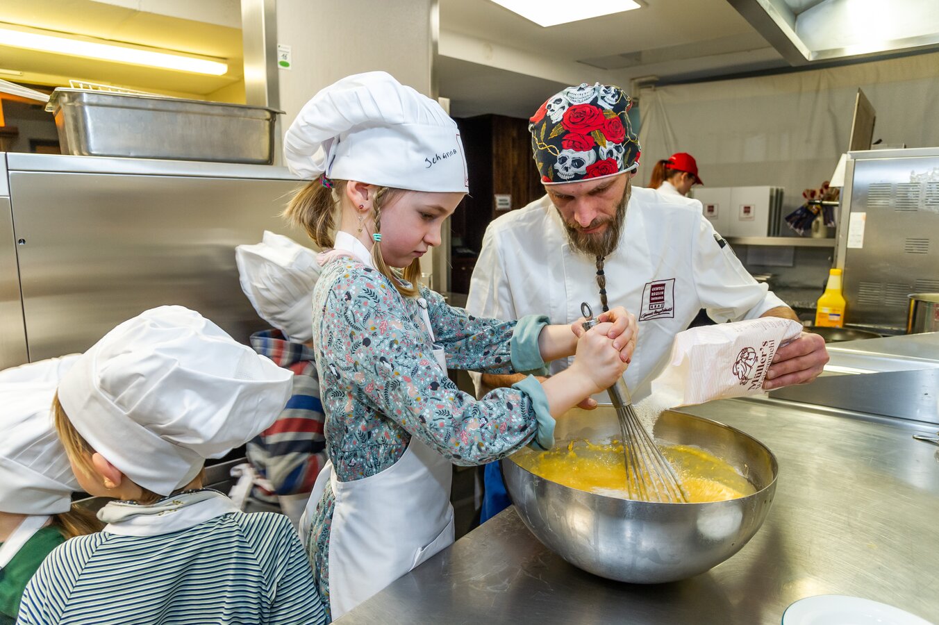 Inklusive: Qualifizierte Betreuung durch die GenussHaupstadt Köche, Kochzutaten, 3-Gänge-Menü, Getränke für die Kinder, Kochhaube, Kochschürze, Kochlöffel, eine Urkunde, das Rezept und eine Sammelmappe für die schönsten Erinnerungen.