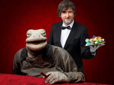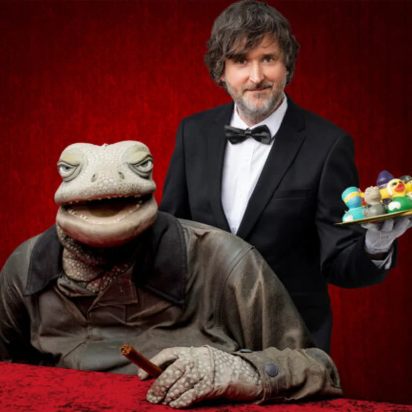 Der vielfach ausgezeichnete Puppenspieler Michael Hatzius serviert Ihnen sein neuestes Bühnenprogramm. Das satirische Mehrgängemenü enthält Köstlichkeiten wie das ständig streitende Schweinepaar Steffi und Torsten, die cholerische Zecke, das schüchterne Huhn und eine Vielzahl an Enten. Garniert wird das Ganze mit einem woken Einhorn und abgerundet durch die Gemüsebeilage in Form einer motzenden Möhre vom Sicherheitsdienst. Den Hauptgang bildet natürlich auch hier wieder die weise und abgeklärte Echse mit ihrem Überblick über Vergangenheit und Zukunft, sowie tiefen Einblicken in aktuelle Themen unserer Zeit.