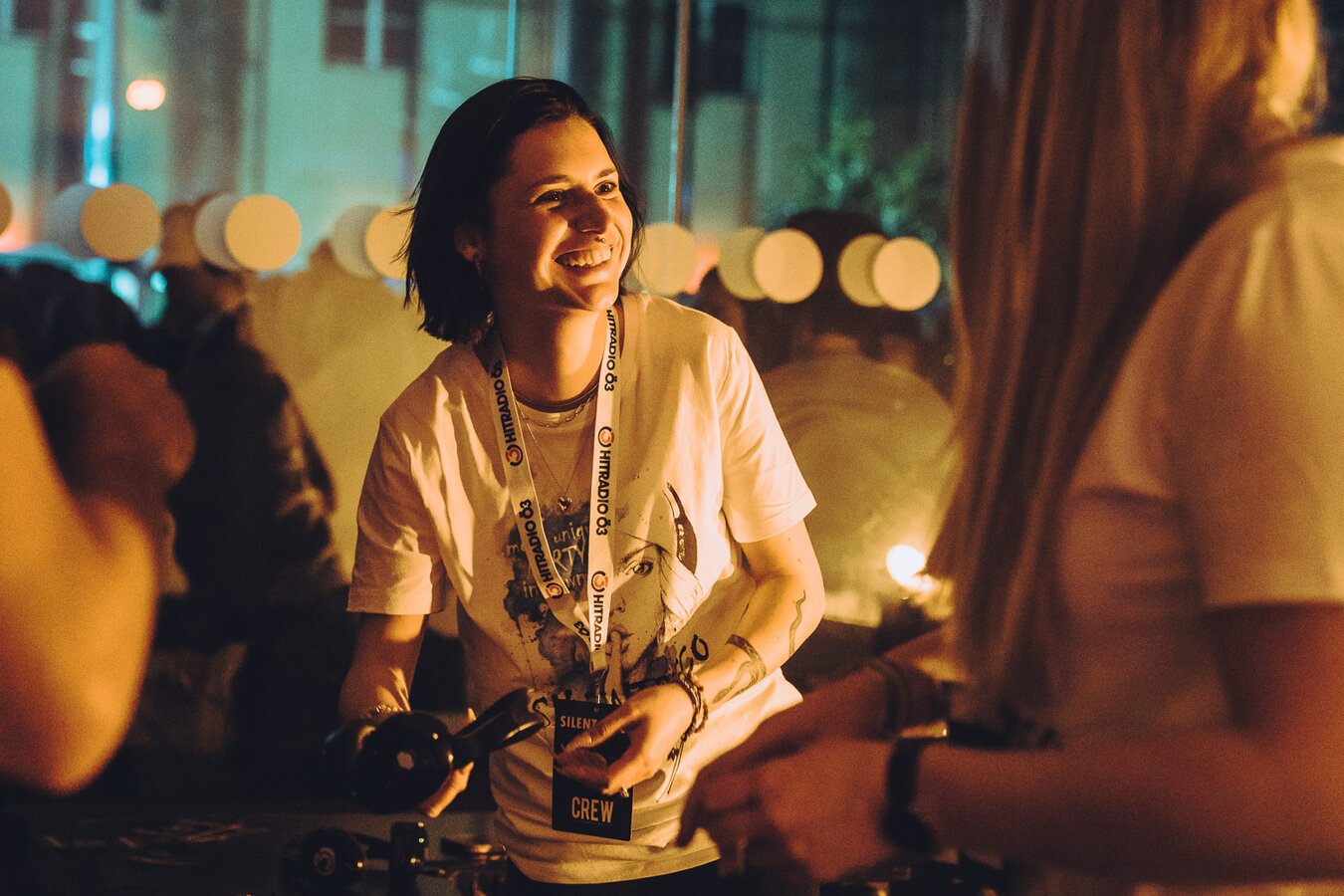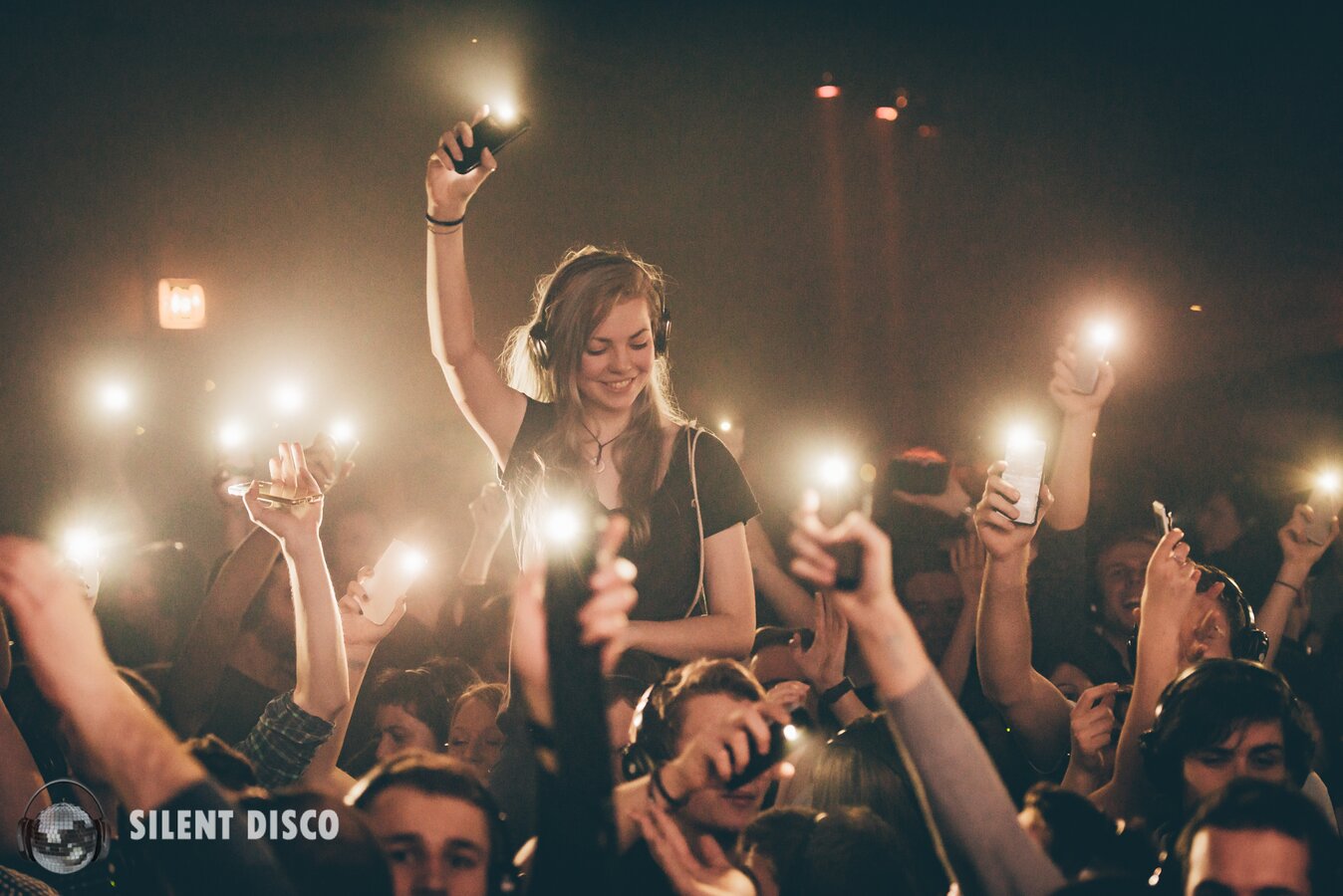 Stell dir vor, du stehst inmitten von singenden und tanzenden Menschen – obwohl keine Musik zu hören ist. Als Besucher erhältst du einen Kopfhörer über welchen du die Musik des Abends genießen wirst.