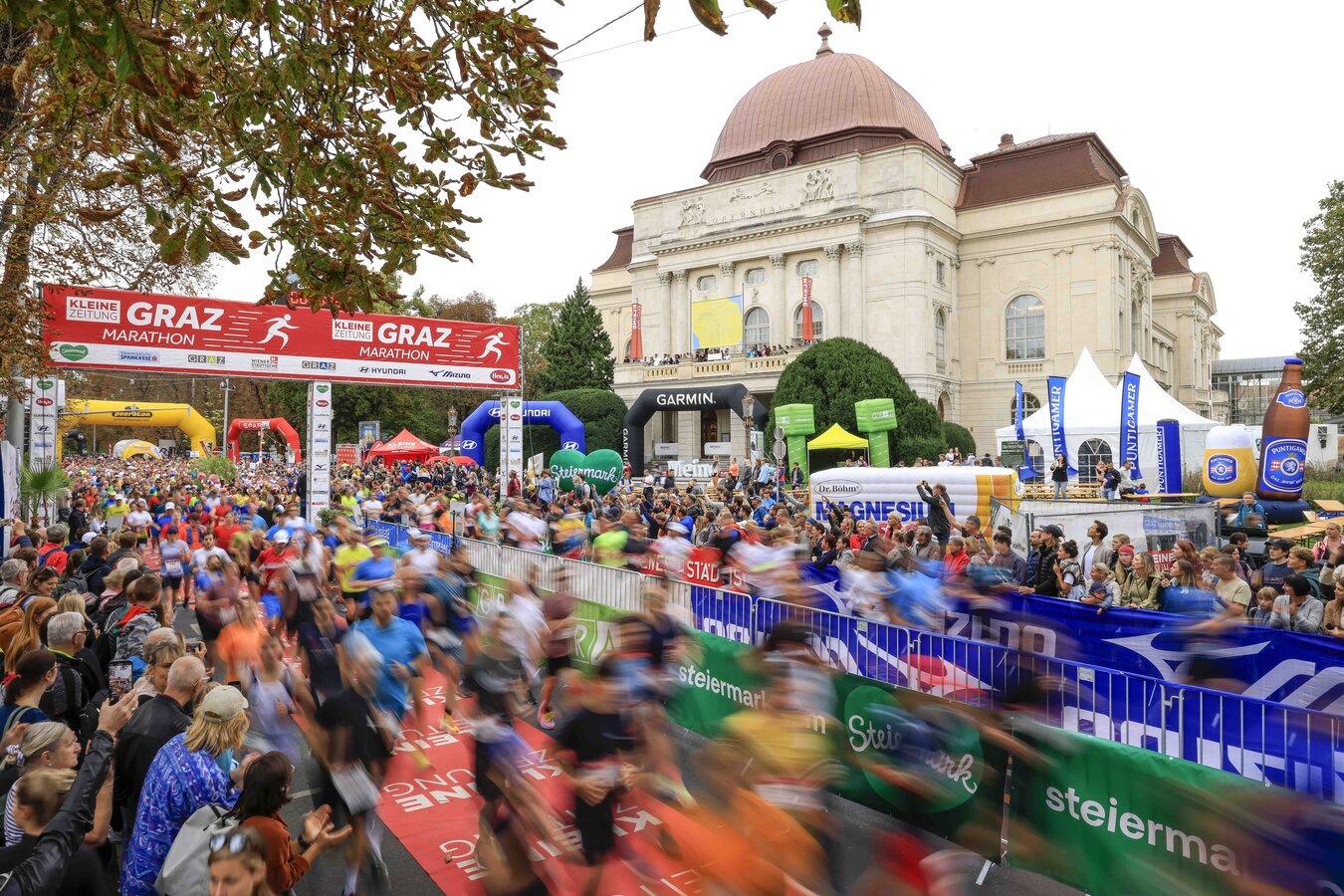 The Graz Marathon attracts more than 6000 runners every year. The attractive track starts and finishes at the Graz Opera House, leads in two laps through the University district, along the Schlossberg and passes by the Mur Island and the Kunsthaus, and finally through the historic city center back to the Opera.