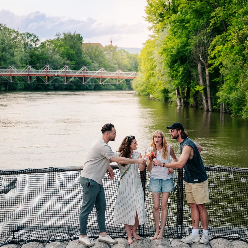 Experience a unique adventure on the Mur with the rafting tours of "Die Flößerei" in Graz! Enjoy the relaxed atmosphere on the water while gliding through the beautiful surroundings of Graz together with friends, family, or colleagues, and discover the city from a completely new perspective. The raft trips offer fun, nature, and unforgettable moments – a truly special Graz experience!