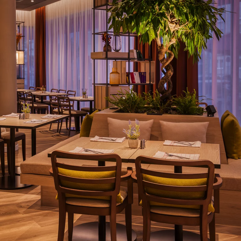 The Ghega is located directly at the main train station and welcomes its guests in the stylish Matteo-Thun design in the restaurant or on the cozy terrace. Tasty dishes from Austrian and Styrian cuisine are served. For those who like to stay longer, the bar offers a rich collection of fine wines, spirits, drinks and cocktails. Whether a romantic dinner for two, a cozy evening in convivial company, a corporate event or a Christmas party - here you will feel completely at home.