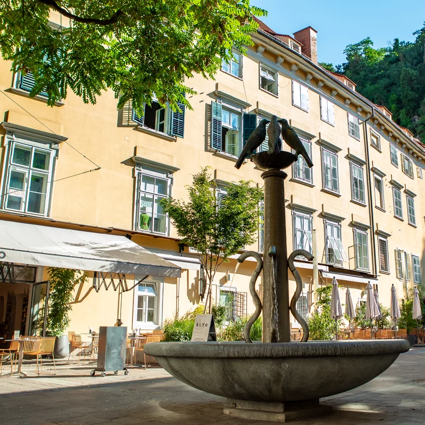 The beautiful garden terrace, with its view of the Graz Clock Tower, is a delight not only in summer but also in winter, when it invites you to linger among glowing Christmas trees.