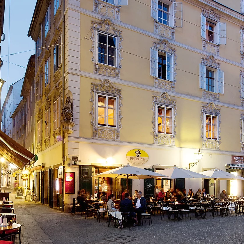 Italian specialities from morning till night! Start off the day with an espresso, later a perfect pasta or fish dish for lunch, then taste their home-made gelato, followed by an early-evening Aperol. For dinner, try the ristorante on the first floor. Casino partner!