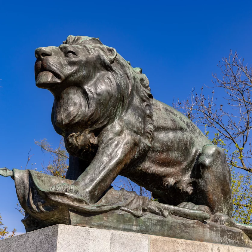 The original Hackher Lion by Otto Jarl was unveiled in 1909 to mark the 100th anniversary of the successful defence of the Schlossberg against French trops. The bronze statue was dedicated to Major Franz Hackher zu Hart, who was celebrated as a hero in 1809, Hackher had successfully defended the Schlossberg as commander in the War of the Fifth Coalition against Napoleon, which was generally unfavourable for Austria. The victorious French ordered the fortress to be razed in the same year. The monument was melted down during the Second World War. A referendum in Graz in 1963 led to its reerection, which Wilhelm Gösser realized in 1966 with a loose replica of the original lion.