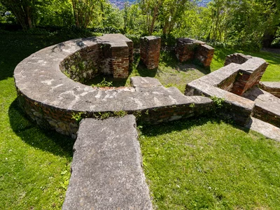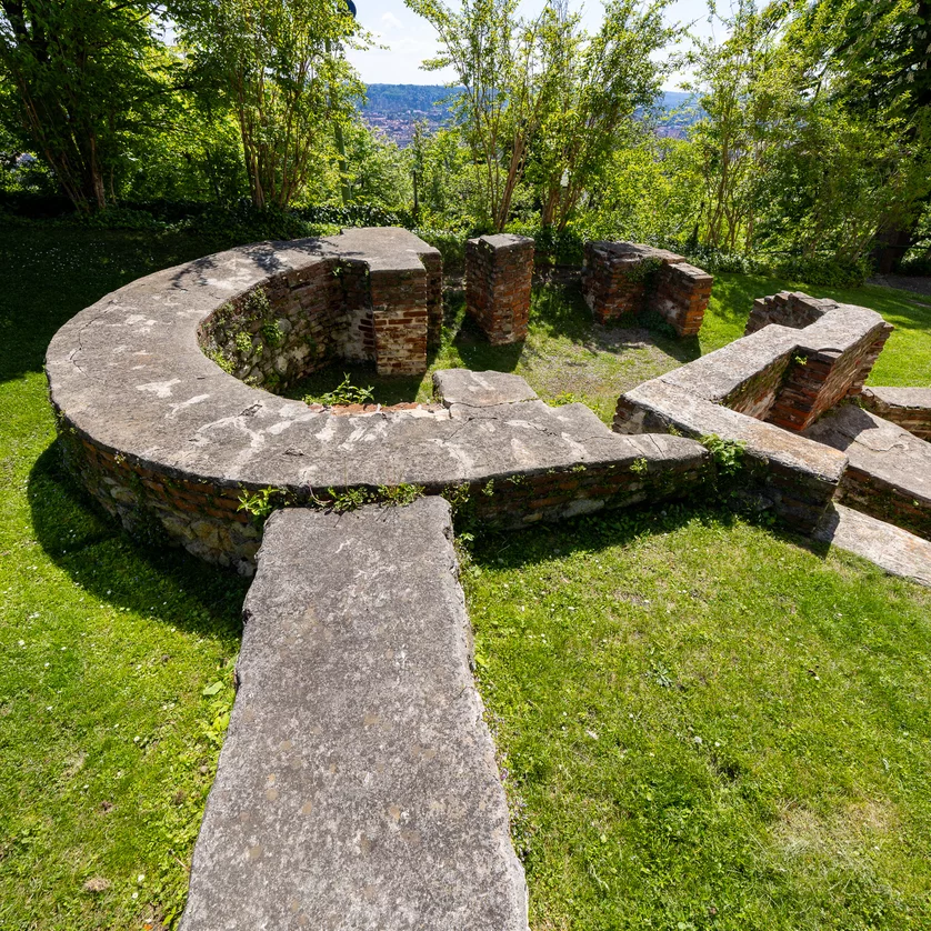 The remains of St Thomas Chapel are one of the few vestiges of the medieval castle complex. The round building with a semi-circular apse facing east was first documented in 1271. In contrast to the modest exterior, the interior of the chapel was lavishly decorated. In the 16th century, Protestant masses were also held here temporarily during the Reformation. Church services were held in St Thomas Chapel for the prisoners detained on the Schlossberg. The sacral building was spared from being razed in 1809 but was dismantled in 1810 due to structural damage. Only the foundation walls that were uncovered in the 1990s have been preserved. The lion figures at the former entrance are replicas.