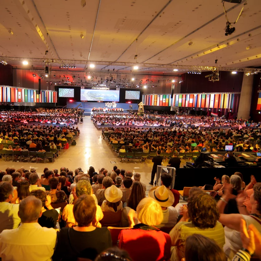 As the size of the hall can be divided by means of electronic curtains, it also lends itself to smaller events such as receptions and galas. The three foyers on the ground floor, extremely bright and airy, offer another 3000 sqm of usable space for various events.