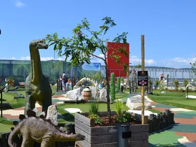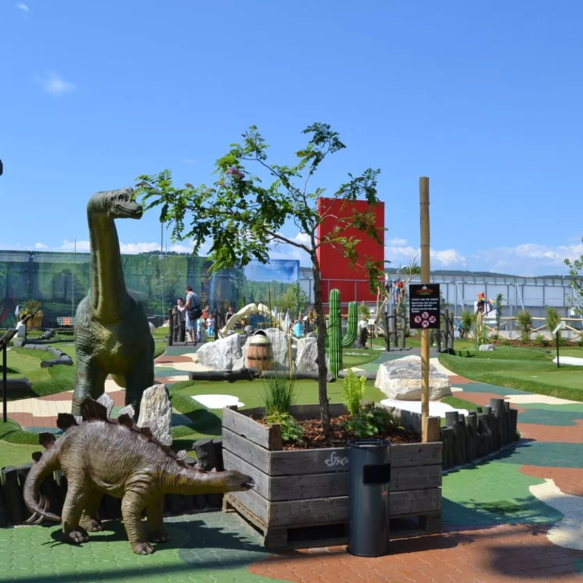 Il minigolf “Adventure Minigolf” offre una versione emozionante e moderna del minigolf, che imita perfettamente l'esperienza del putting su un grande campo da golf. Il gioco si svolge su campi in erba artificiale progettati in modo realistico, sul modello di famosi campi da golf di tutto il mondo. Ma attenzione: bunker di sabbia, ostacoli d'acqua e rocce che colpiscono richiedono l'abilità dei giocatori e rendono la famosa “buca in uno” una sfida speciale - eppure è possibile in ogni campo!