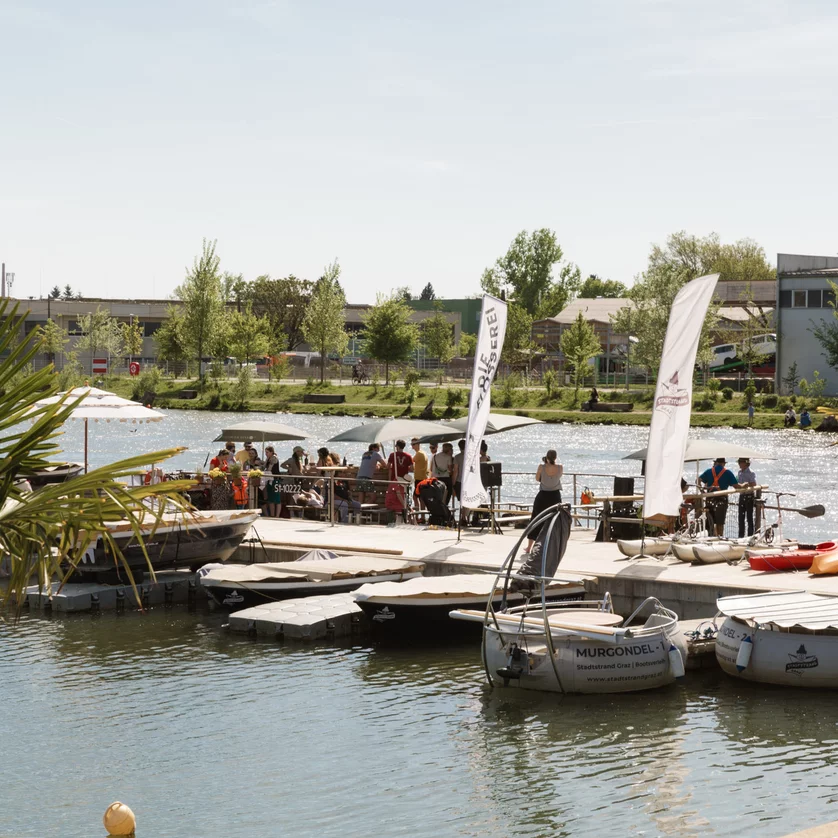 Scoprite la città dal fiume da una nuova prospettiva: con le gite in zattera sulla Mur attraverso il centro di Graz. Le gite pubbliche si svolgono più volte alla settimana, ma l'intera zattera può essere prenotata anche per tour privati o eventi. La zattera, priva di barriere architettoniche, può ospitare fino a 50 persone, è dotata di un bar e su richiesta è possibile organizzare catering o musica dal vivo!