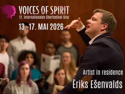 Il festival corale internazionale Voices of Spirit trasformerà Graz in una “Città che canta” dal 13 maggio al 17 maggio 2026. Ēriks Ešenvalds sarà l'artista in residenza.