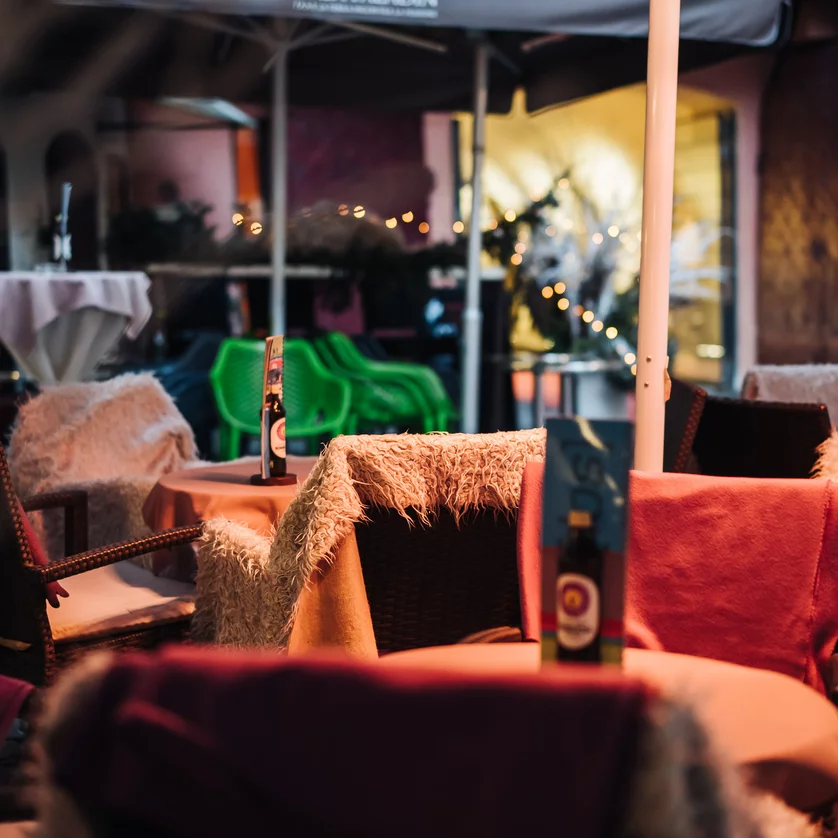 Il Café zeit[los] si trova nella Herrengasse - nella "Gemaltes Haus - la Casa Dipinta" - in uno dei cortili interni più belli della città - nell'Herzogshof.