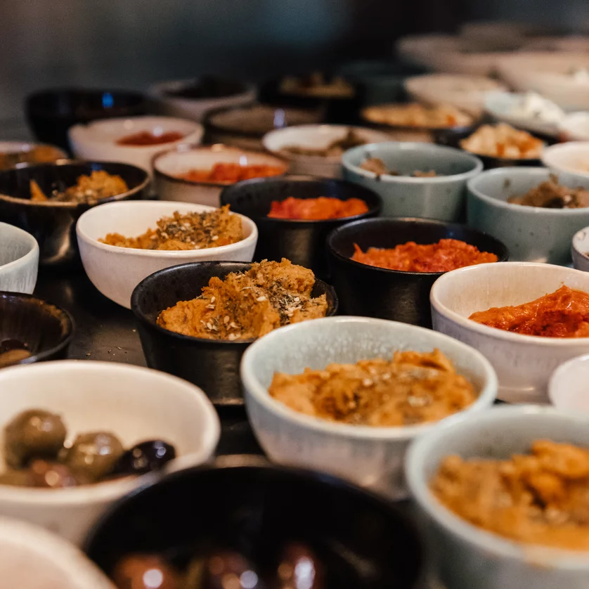 È qui che la cucina levantina arriva in tavola sotto forma di mezze: tante ciotoline e piattini con piatti freschi da passare in giro per un'esperienza di gusto orientale.