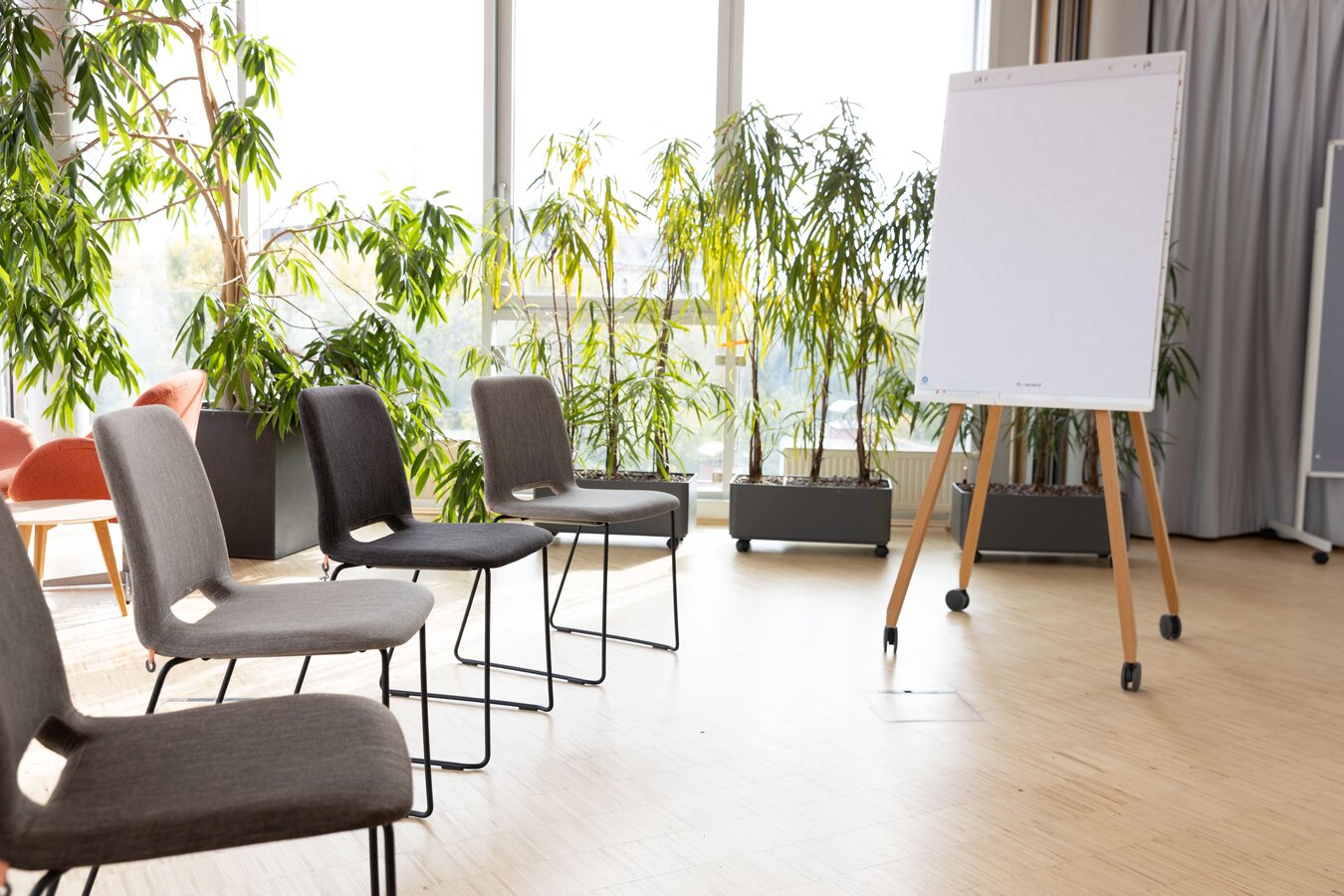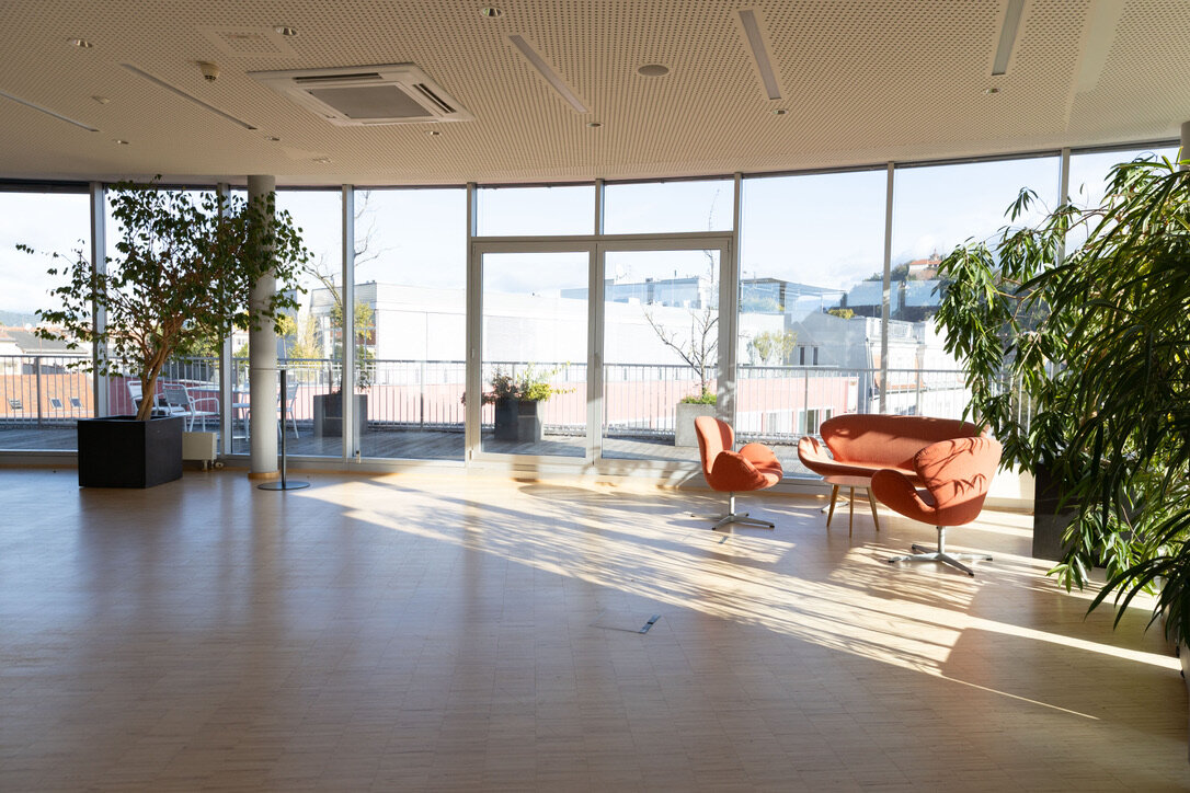 Mitten in Graz am Entenplatz: Level 4 ist Meetingraum, Seminarraum und Eventlocation mit 90 m² Hauptraum, 85 m² Terrasse und 270° Panoramablick auf Uhrturm & Schlossberg. Warme, offene Atmosphäre – ideal für Workshops, Meetings und besondere Events.